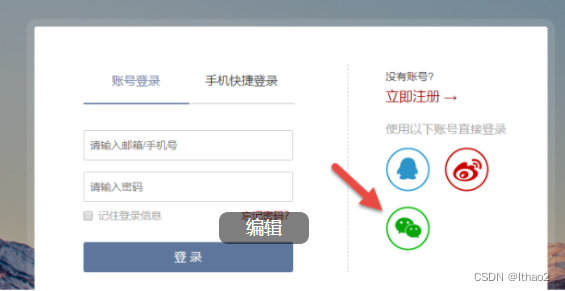 用户进入登录页面,点击微信的图标以微信账号登录系统,用户是自己在微信里信息的资源拥有者。