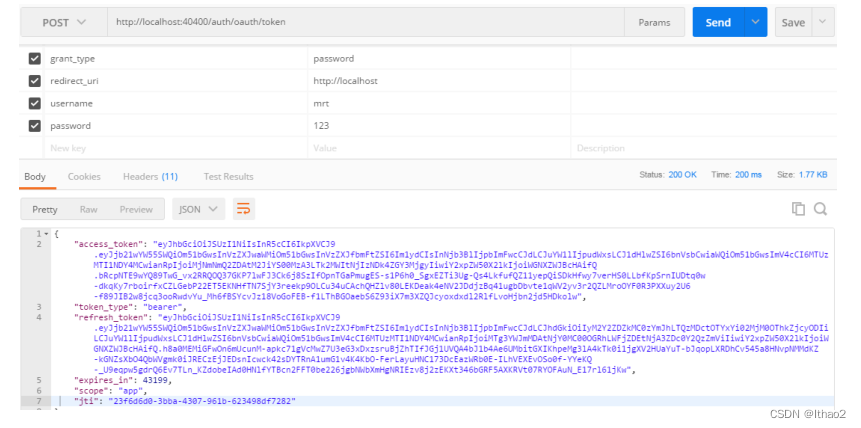 注意:资源服务器和认证服务器可以是一个服务也可以分开的服务,如果是分开的服务资源服务器通常要请求认证服务器来校验令牌的合法性。