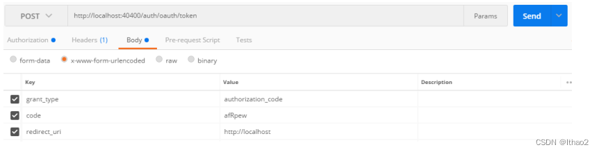 3、客户端获取到授权码,请求认证服务器申请令牌