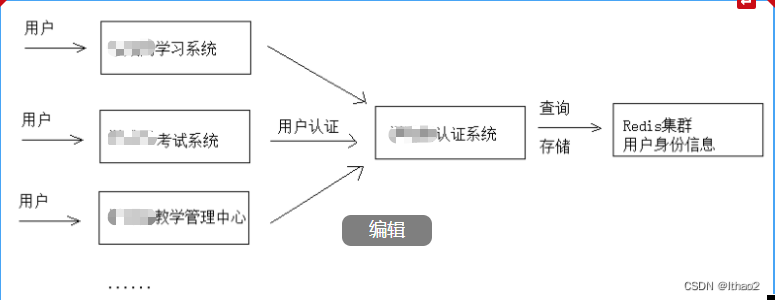 分布式系统要实现单点登录,通常将认证系统独立抽取出来,并且将用户身份信息存储在单独的存储介质,比如:MySQL、Redis,考虑性能要求,通常存储在Redis中,如下图: