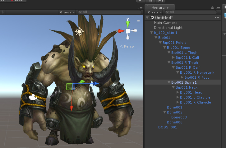 我们导入一个怪物模型,然后在Hierarchy面板,可以看到这个模型上面的所有骨骼。