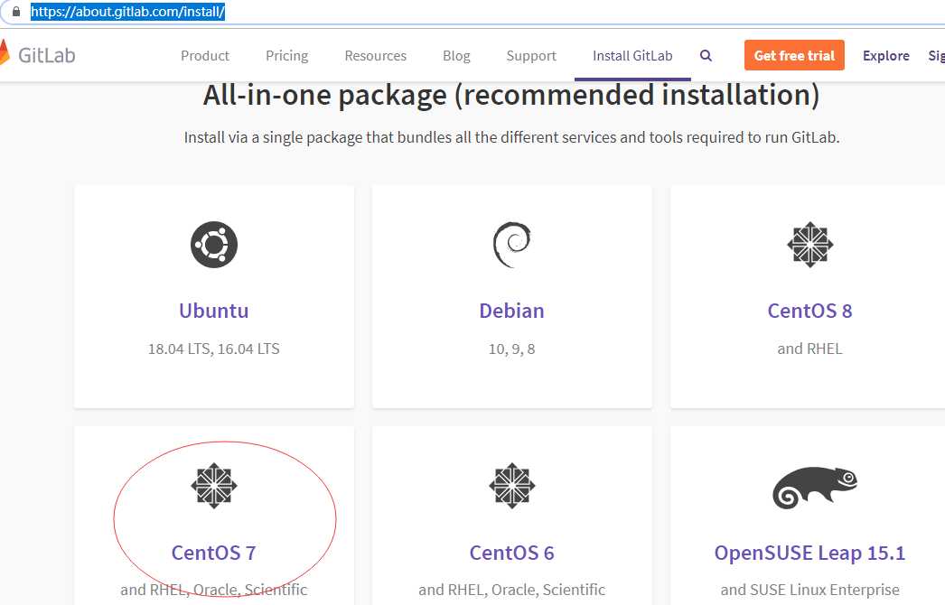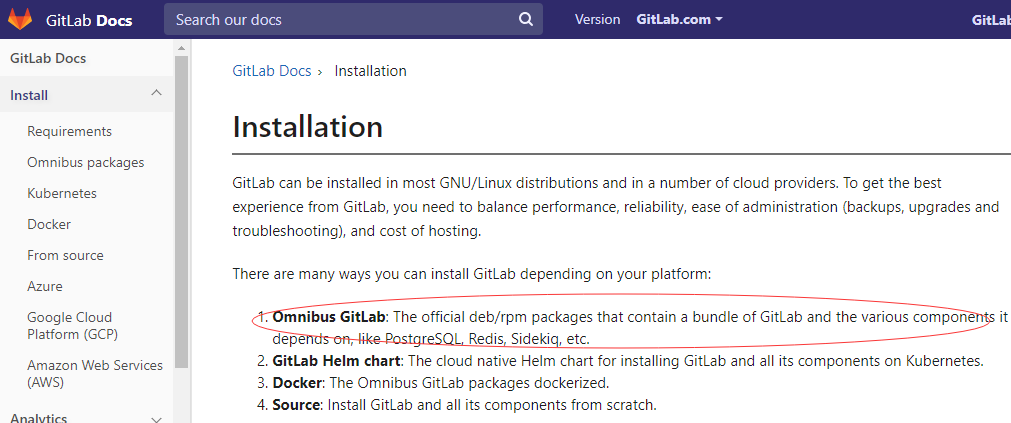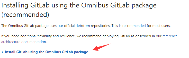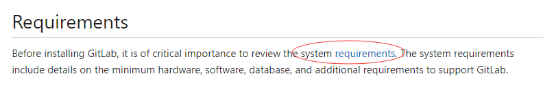 在Linux系统中安装gitlab,对系统的相关最低要求,可以点击如下图椭圆标注内容进行查看。
