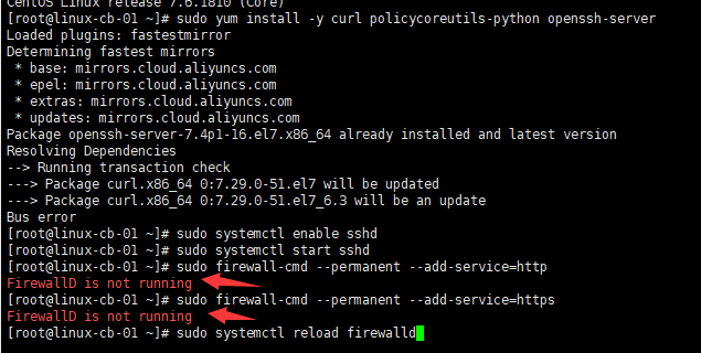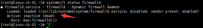 上图中提示“FirewallD is not running”问题。执行如下指令查看firewalld状态,结果当前是dead状态,即防火墙未开启