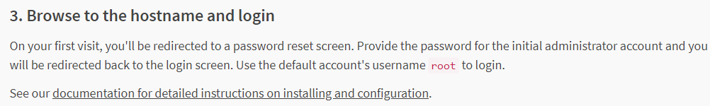 首次进入,会被导向到一个重置密码的页面,设置完成后会被导向到登录页面,可以使用默认账号root进行登录。