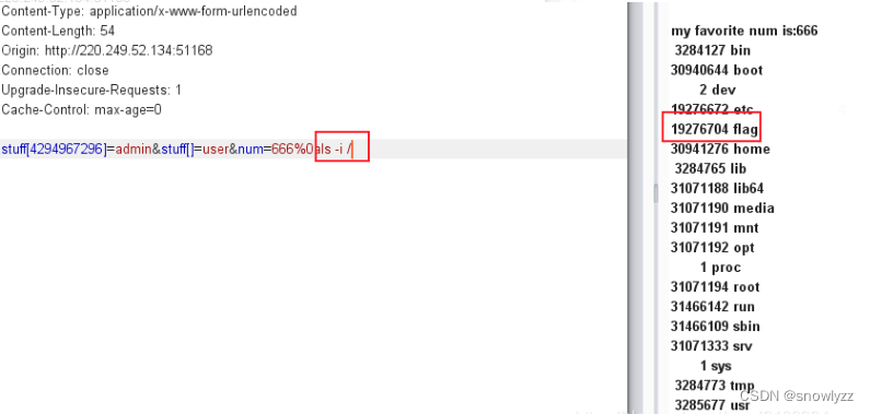 接下来就是绕过第二个参数的过滤了,即:绕过正则来执行恶意的命令。他只允许num是数字,而我们需要用代码来命令执行。这里用到 %0a