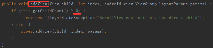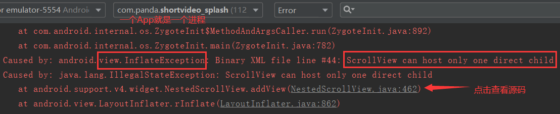 这样就出现视频填充错误: ScrollView只能容纳一个直接child,所以只能把view控件放在LinearLayout布局下