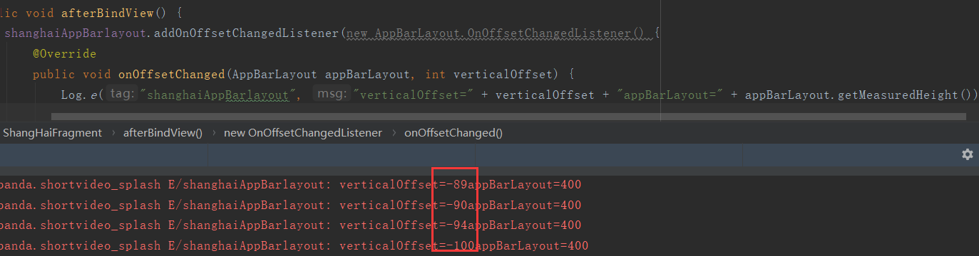 shanghaiAppBarlayout.addOnOffsetChangedListener(new AppBarLayout.OnOffsetChangedListener() {