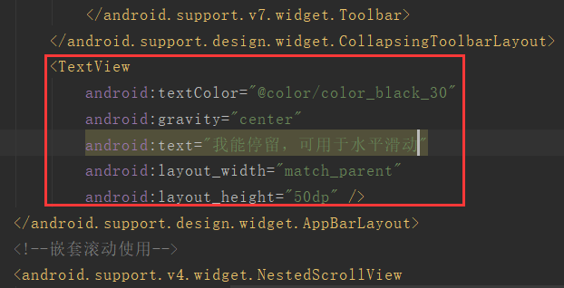 <!--app:layout_collapseMode="pin" 可以停留在屏幕上面的,不会折叠-->