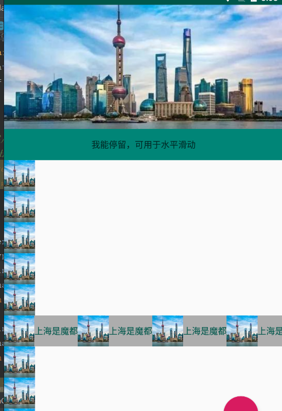 EnterAlwaysCollapsed:这个属性是上个属性的附加值,这里涉及到Child View的高度和最小高度,向下滚动时,Child View先向下滚动最小高度值,然后Scrolling View开始滚动,到达边界时,Child View再向下滚动,直至显示完全。
