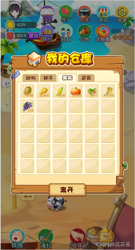 7.仓库:兑换的商店商品会存入仓库,种植产生的果实会存入仓库