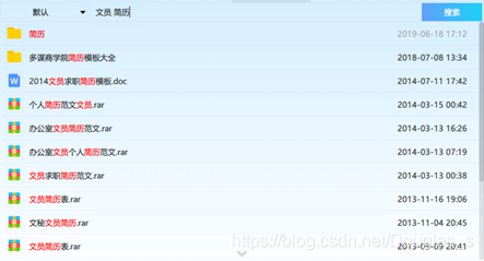 #Pandownload#启动(低调使用), 关键词搜索【文员 简历】,第一个失效其他压缩包,下载了第二个文件夹的内容。
