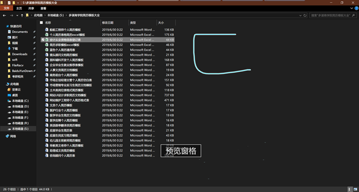 打开后,有26份文档,有word有表格,本来习惯性的准备双击打开文件,突然想起了windows系统自带资源管理器的一大隐藏功能,*预览窗格*,开启。Tips:Win7与Win10都有此功能,快捷键是Alt+P。