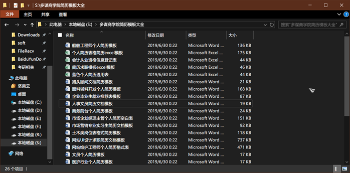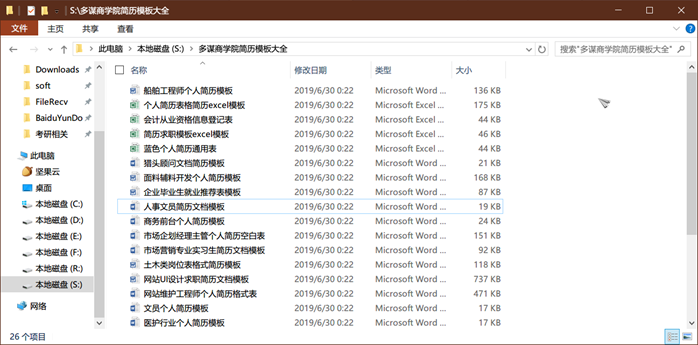 2.将下载过的简历模板,过不了眼的其他统统删掉,自己筛选出来做个合集。