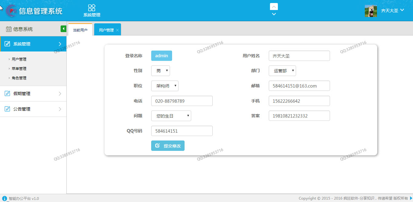 《权限管理系统/OA办公管理系统》该项目是一款类似于办公软件,负责用户的权限,不同用户登录访问不同的界面,并且本项目含有源码、配套开发软件、软件安装教程、项目发布教程以及代码讲解教程,另提供免费查重权限。