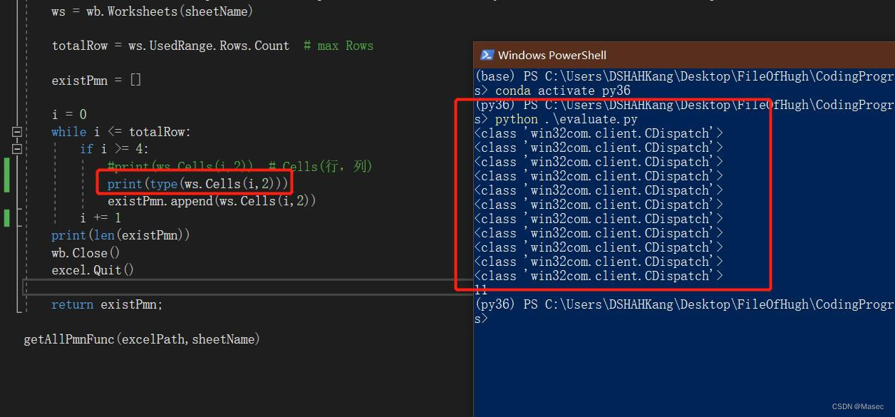 }在该方法中,额外调用了Python脚本来访问excel,Python脚本为getAllPmn.py.