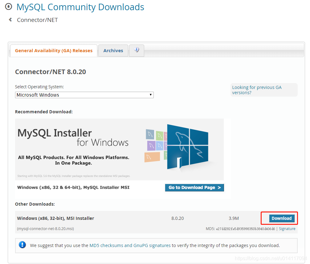 官方下载地址:http://dev.mysql.com/downloads/connector/net/