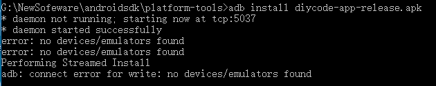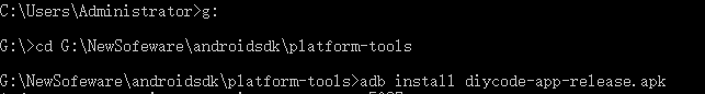 再然后就是输入adb install diycode-app-release.apk 如图:
