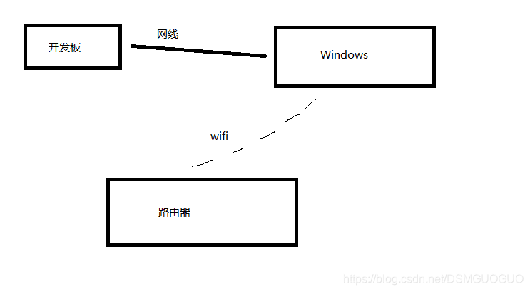 1 . 本次使用的是没有路由器的情况,采用网线让开发板和电脑直接相连,如果有路由器或者集线器的话尽量使用,不然直接相连有时候会出现奇奇怪怪的问题,下面就是我平时的配置环境。开发板网线直连电脑,然后电脑用wifi联网,保证学习,如果没有路由器的也无所谓,大不了上不了网,手机开热点也阔以。