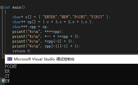 首先来看第一个printf,这个比较简单,首先++让cpp指向了c+2,再解引用两次就会得到POIN