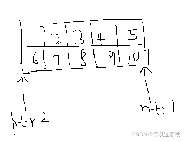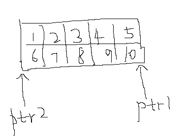 其实可以通过画个图很容易就找到ptr1,ptr2所指向的位置,答案就很明了了。