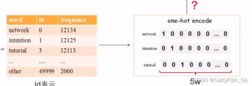 不能表征词与词之间的关系,one-hot 之间是正交的
