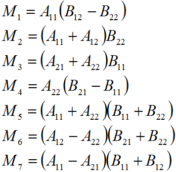 即用7次乘法和若干次加减法就能得到矩阵乘积: