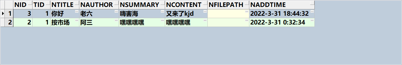 String sql="select nid,ntitle,nauthor from tb_fb order by nid desc";