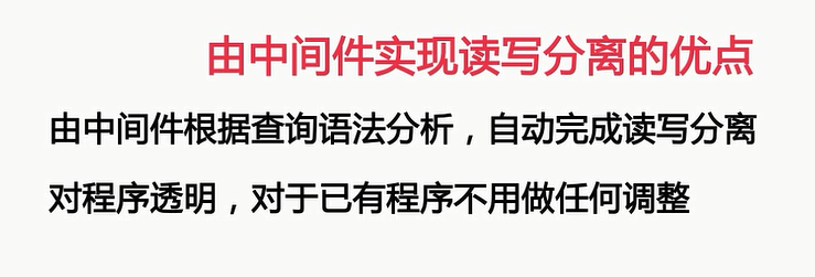 使用中间件来实现读写分离的优点,中间件会根据SQL语法的分析,分辨出所要处理的操作是读操作还是写操作,例如通过解析SQL发现呢,