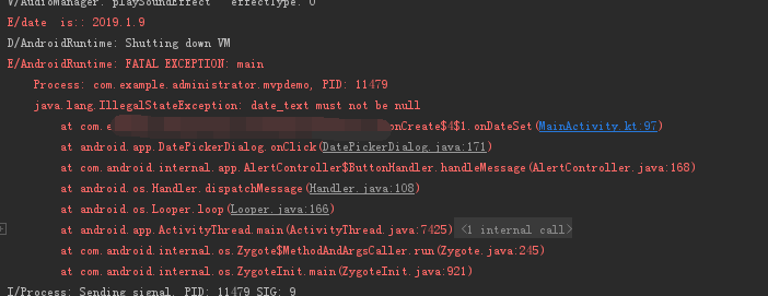 其中的date_text就是我的控件id,我Log,debug了datePicker有数据,点击date_text也是直接跳进引用的页面,我又检测了activity引用的布局没问题,于是乎我又开始怀疑是不是我tun函数用得不对,但是无论我怎么调试都是报空!!!!!!!!