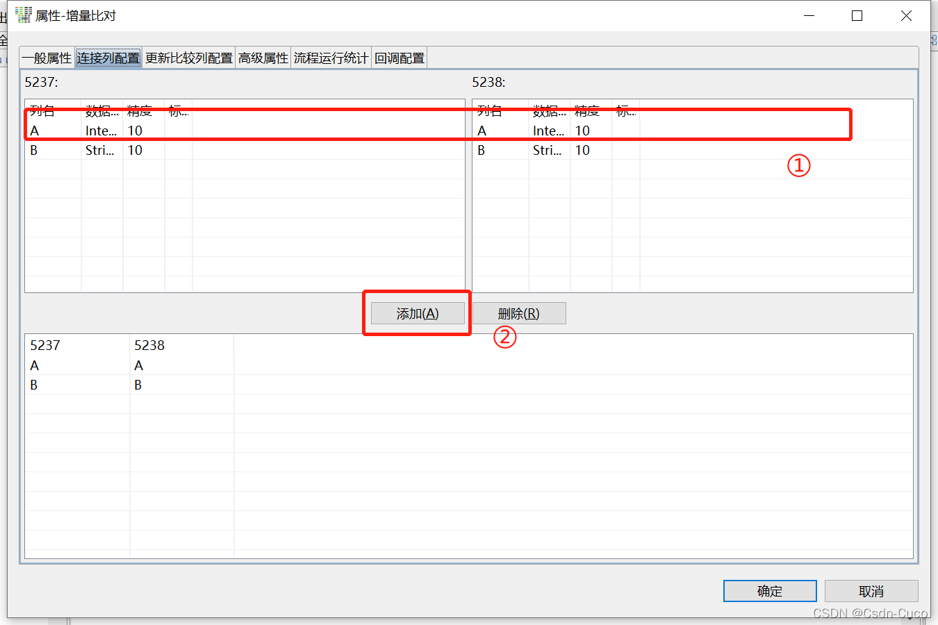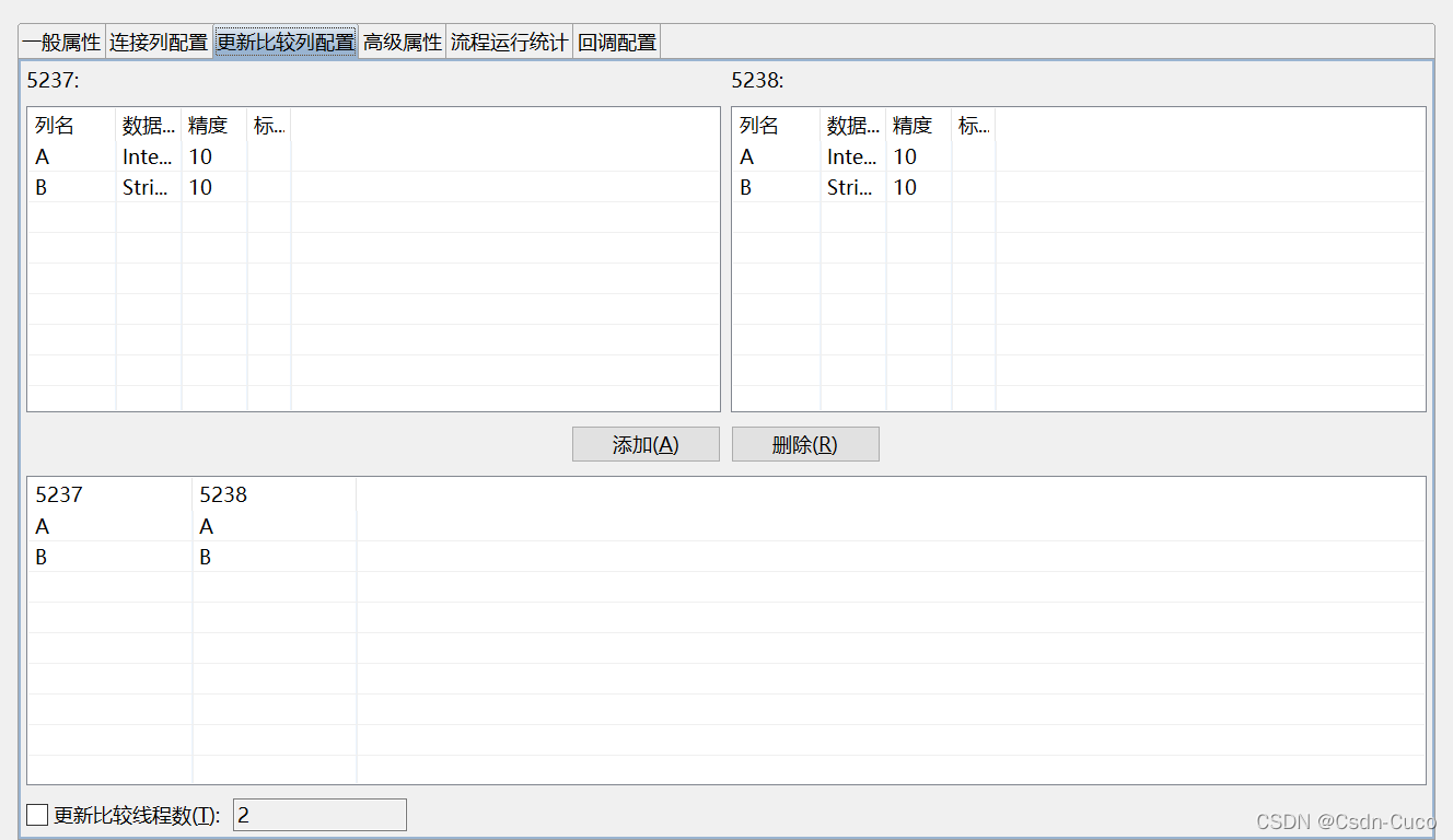注意:配置更新比较列,这里配置了3个更新比较列,其他列都不是更新比较列,那么只有这3列发生数据变化才会被比较出不同,发生增量同步,其他列的数据变化都不会产生增量同步。
