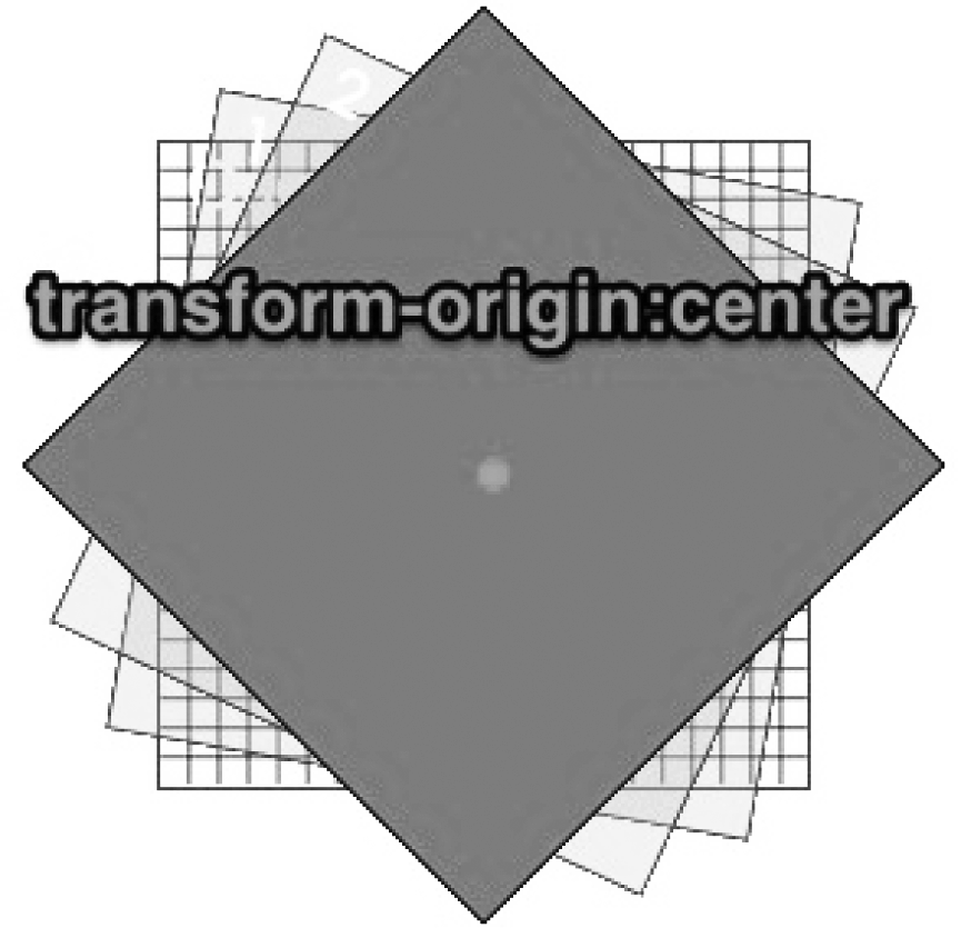 如果希望以其他位置作为转换原点,可使用transform-origin属性修改。在二维平面中要确定一个原点,通常需要两个值,分别是原点的x轴坐标和y轴坐标。因此,transform-origin属性的一种语法格式为:transform-origin:x y。其中,x、y可以是数字,也可以是百分比,还可以是表示位置的关键词。对应效果如图6-11所示。