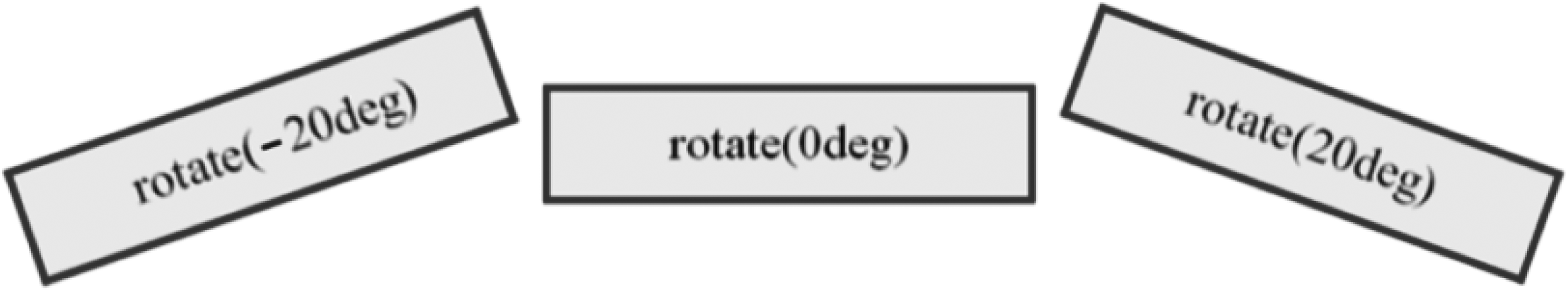 旋转就是改变元素在页面上的角度。在设置transform属性时,执行rotate()函数可让元素旋转一定的角度。rotate()函数的语法格式为:rotate(ndeg)。其中,n是角度的数值,deg是角度的单位,意为“度”。若n取值为0,则不旋转;若n取值为正,则元素顺时针旋转;若n取值为负,则元素逆时针旋转,如图6-15所示。