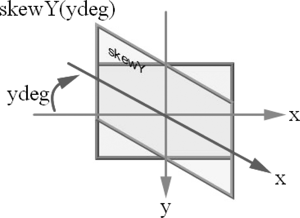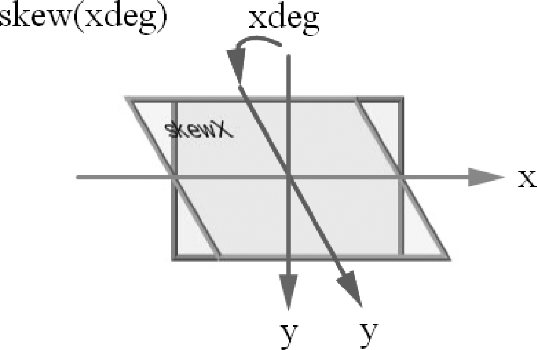其实,也可使用两个参数的skew函数:skew(xdeg,ydeg),同时设置向x轴和向y轴倾斜的角度。