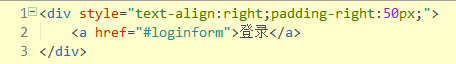 首先,在页面中添加“登录”按钮,居右显示。并设置该按钮的href属性为#loginform。代码如下: