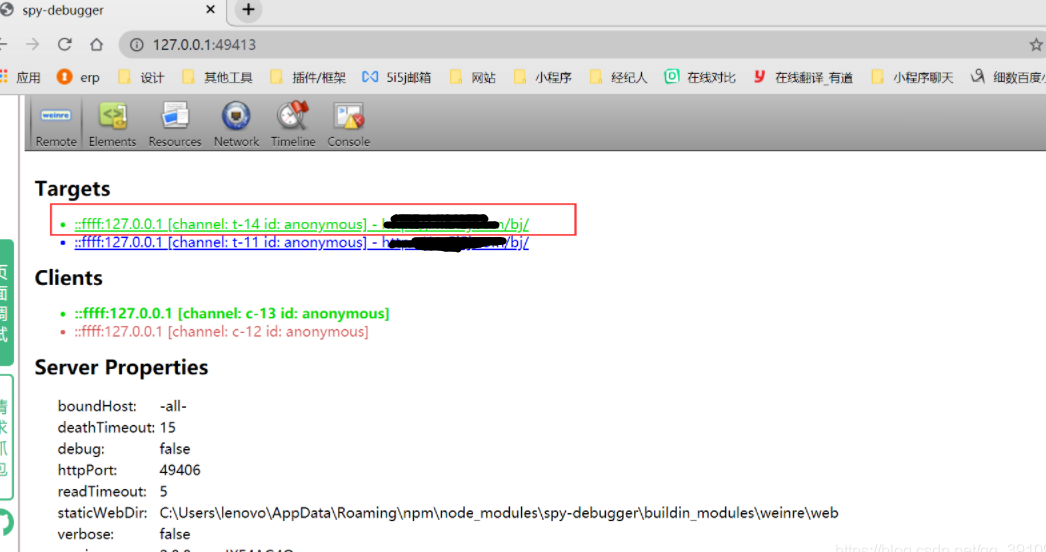 启动并指定端口号:spy-debugger -p 端口号 (默认是9888)