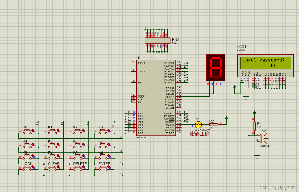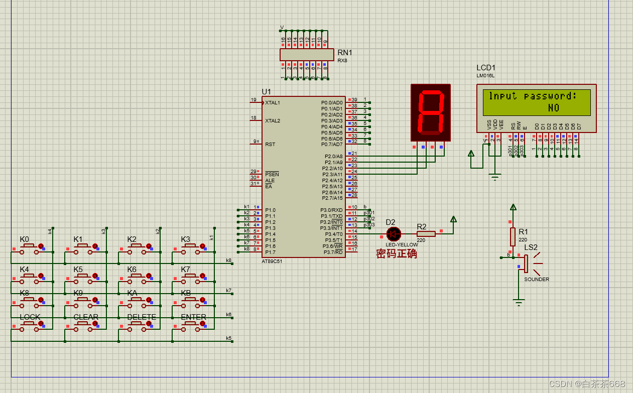 当输入正确时 D2会亮灯,表示输入正确