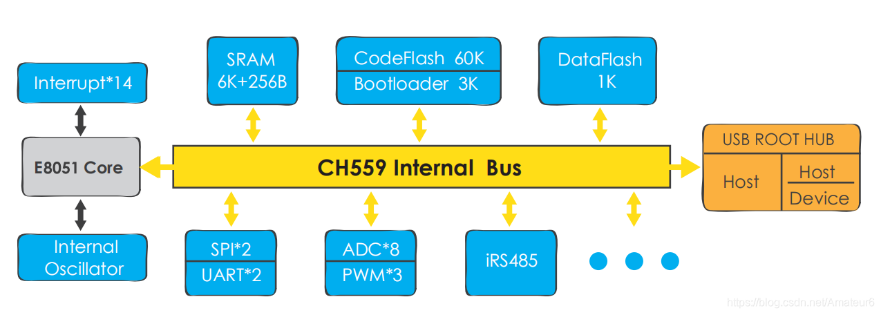 需要的是8位双USB Host 单片机, 支持USB Host/Device模式。CH559兼容MCS51增强型单片机,内嵌USB全速主机和设备控制器,提供并口,双异步串口,主从SPI,3路信号捕捉,3路PWM,ADC等常用功能模块。
