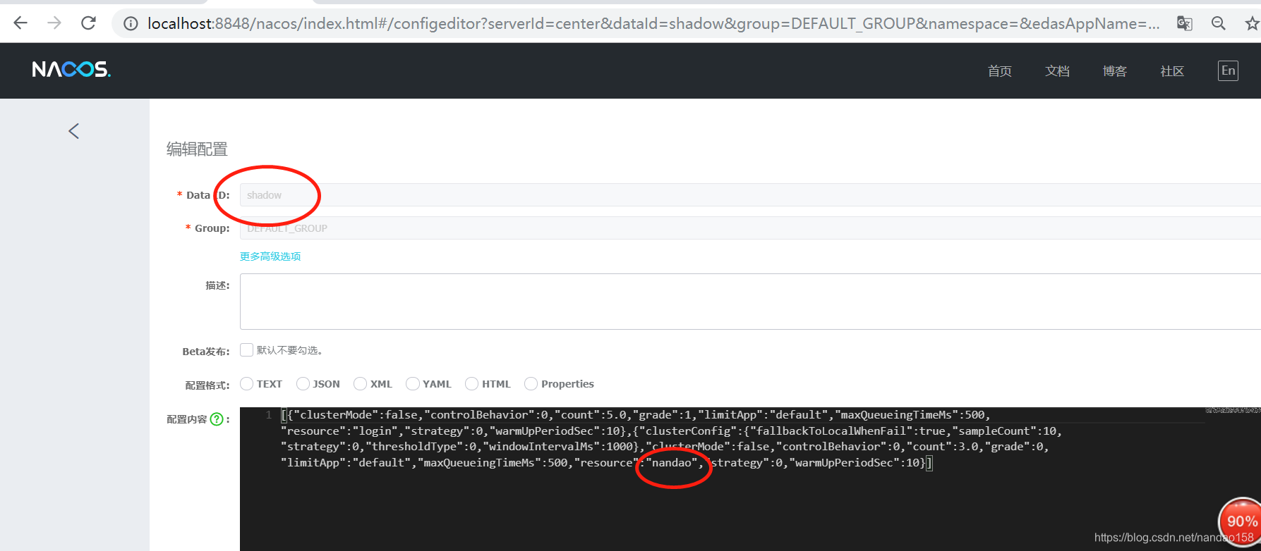 prefix: shadow2、sentinel 的配置信息写到nacos中