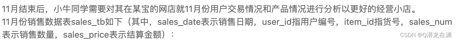 - 由于我们不在乎同一个用户在同一天的多条购买记录,我们在乎的是一共连续了多少天。所以第一步的select里要加distinct,否则比如10号用户,就会被保留三个'2021-11-05'。