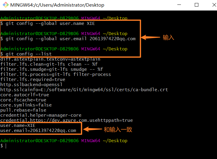 git config --global user.name XIEgit config --global user.email 2061397422@qq.comgit config --list