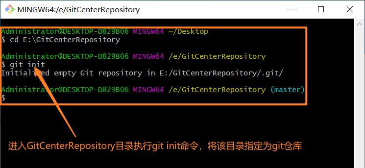 通过命令 git init 把GitCenterRepository目录变成git可以管理的仓库