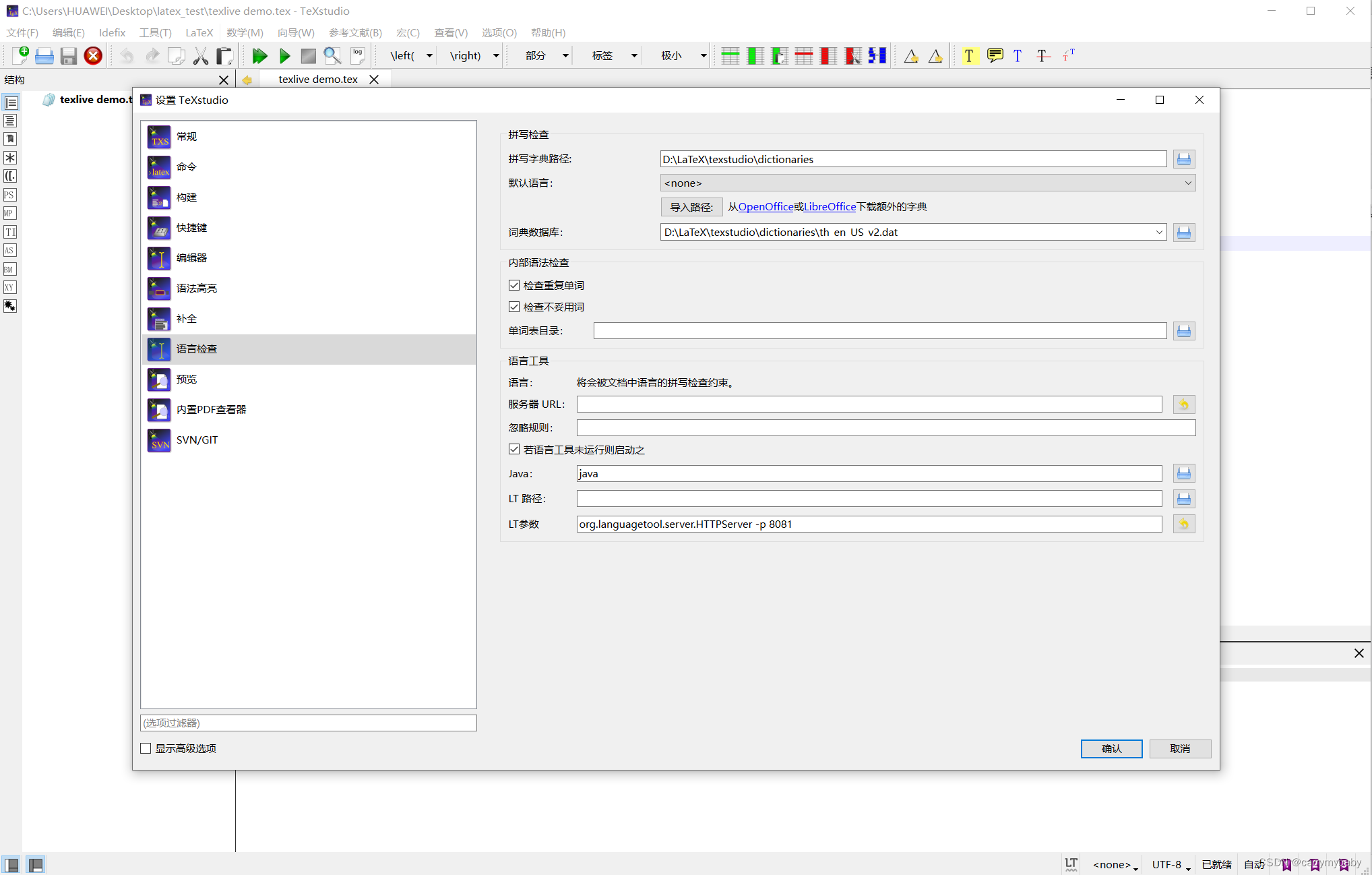 里面有两个文件,一个exe,一个压缩包,运行完exe文件后,进入texstudio,设置语言,默认为none。