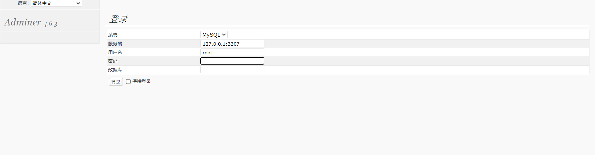 点击上方第5步中页面的右下角的数据库管理,则会弹出如下图所示窗口,输入刚刚的用户名密码即可。