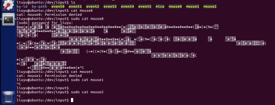 如:输入cat mouse0 然后晃动鼠标,会有信息打印,cat mouse1或者mouse2后不会有信息的打印