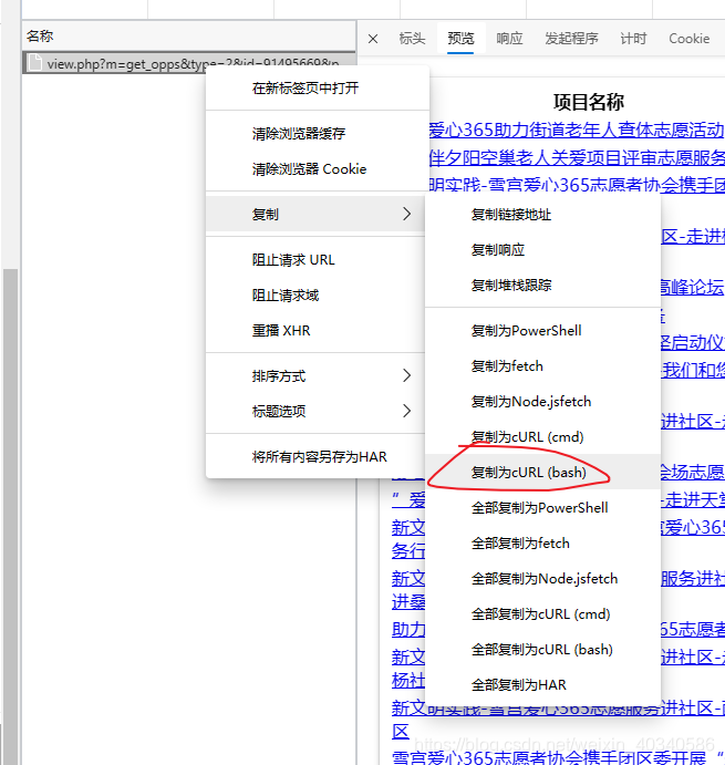 清空一下网络请求信息,点一下某一页的项目。就会看到一个post请求的