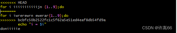 图3是存在conflict的文件,其中<<<HEAD与======之间是本地修改的部分,=====与>>>>之间是从远程仓库更新的部分。
