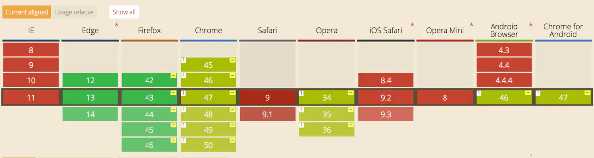 getUserMedia属性兼容浏览器列表: