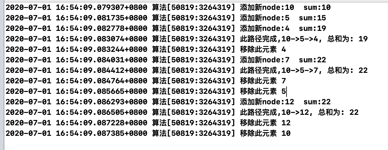 // 打印当前节点,和当前路径的和