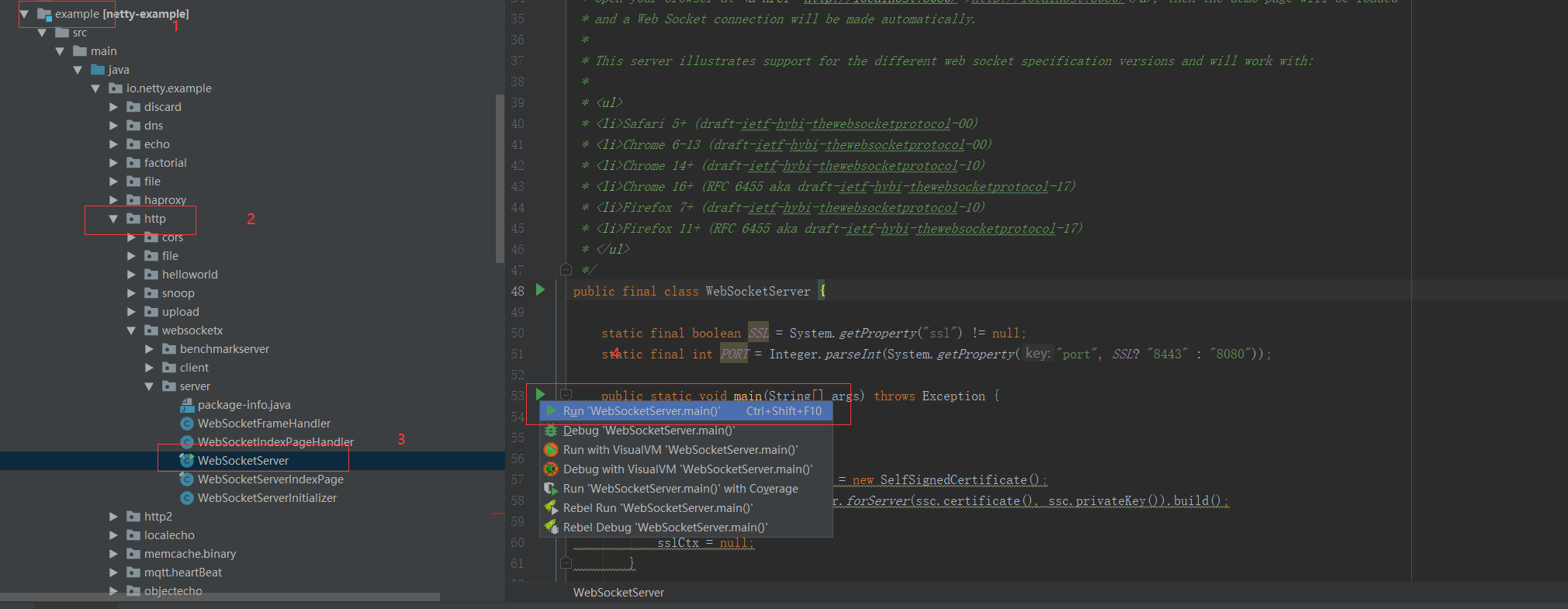 example -> http -> websocketx -> WebSocketServer -- 运行