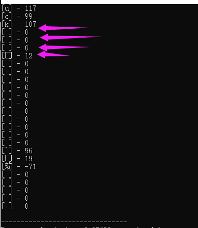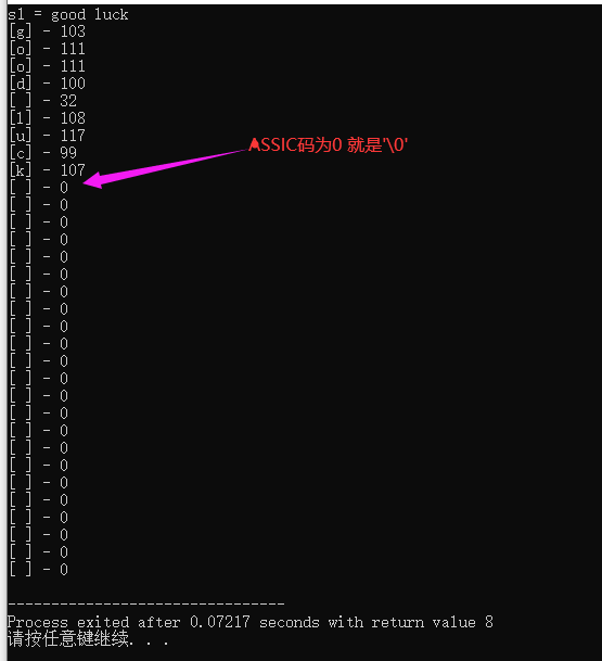 printf("[%c] - %d\n", s1[i], s1[i]);